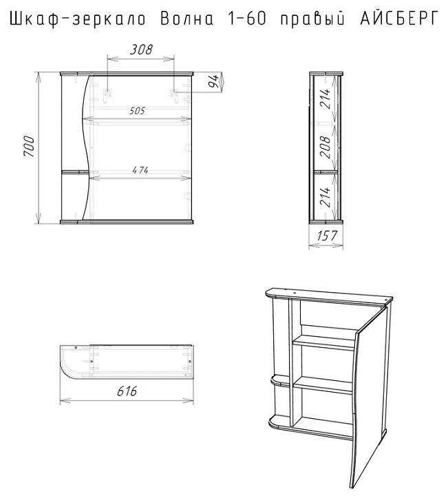 Шкаф-зеркало Волна 1-60 правый Айсберг