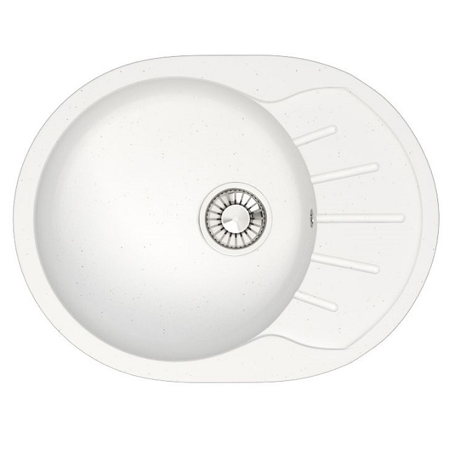 Мойка гранит GLANZ J10 одинарная с крылом 575х440х215 белый матовая, без сифона GLANZ