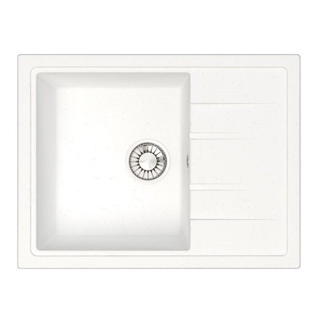 Мойка гранит GLANZ J150 одинарная с крылом 575х470х200 белый матовая, без сифона GLANZ