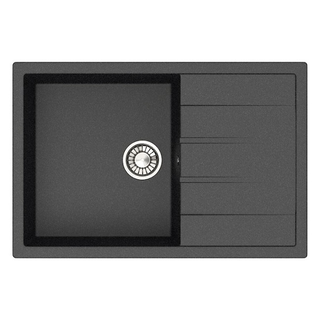 Мойка гранит GLANZ J161 одинарная с крылом 750х505х218 антрацит матовая, без сифона GLANZ