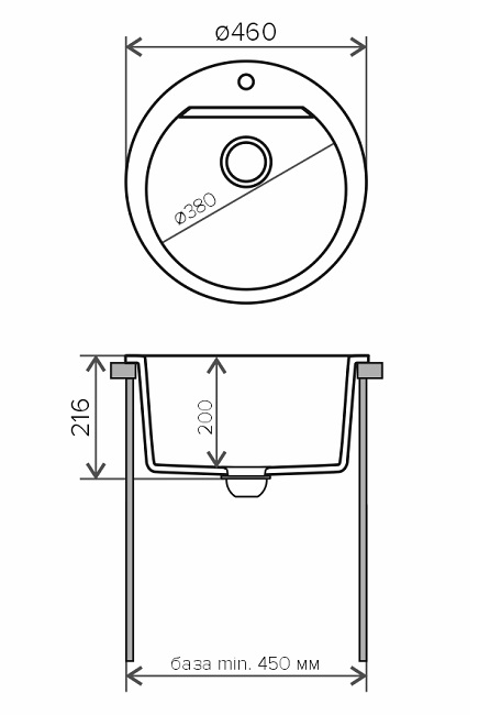 Мойка гранит Polygran Atol-460 круглая 460х460х220 чёрный POLYGRAN