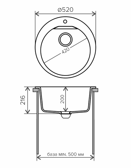Мойка гранит Polygran Atol-520 круглая 520х520х220 чёрный POLYGRAN