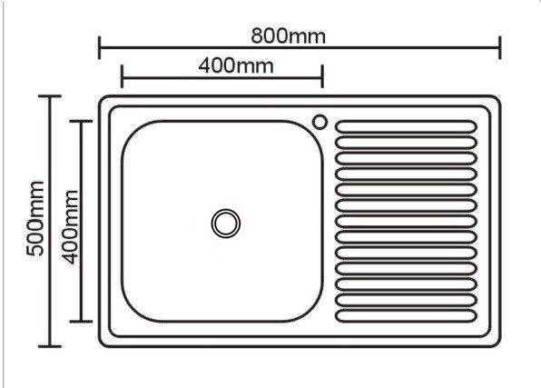 Мойка накладная нерж. 50х80 (0,6х160) ЛЕВ матовая, без сифона Milani