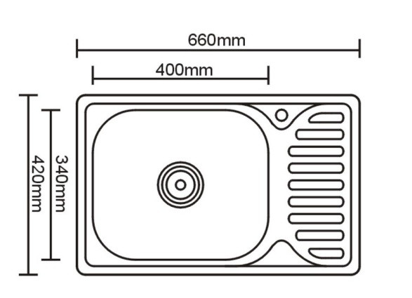 Мойка врезная нерж. 66х42 (0,8х180) ЛЕВ глянец, с сифоном, крепежом Milani