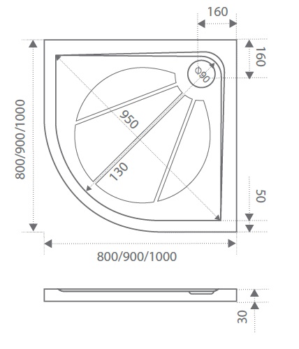 Поддон полукруглый Эклипс 90х90х3,5 литьевой мрамор, без сифона BAS
