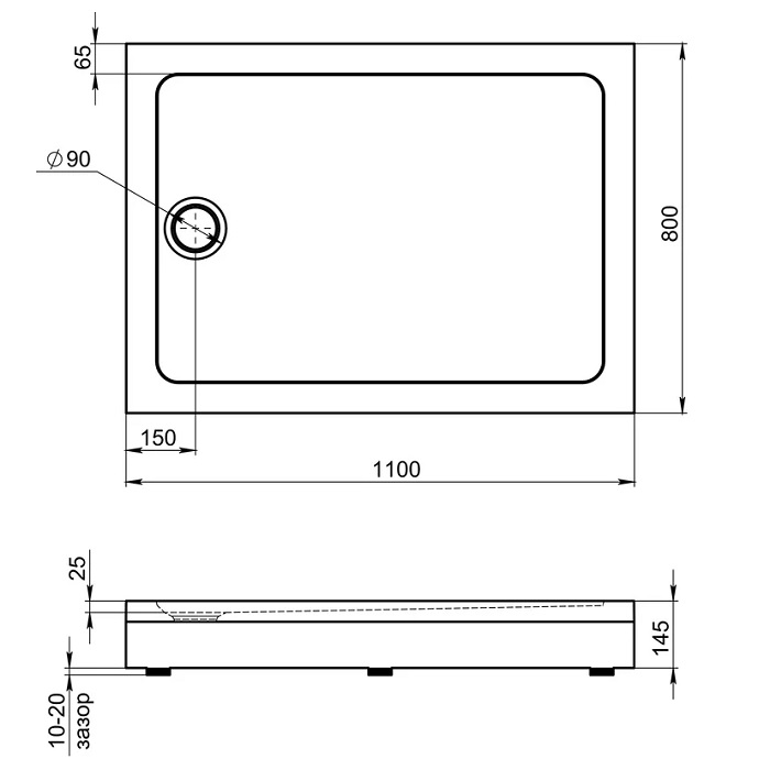 Комплектация: поддон. Ножки, экран и сифон в комплект не входят и приобретаются отдельно.