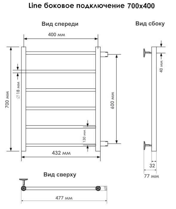 Полотенцесушитель Line 70х40 боковое подключение (1"), цвет чёрный муар ## INDIGO