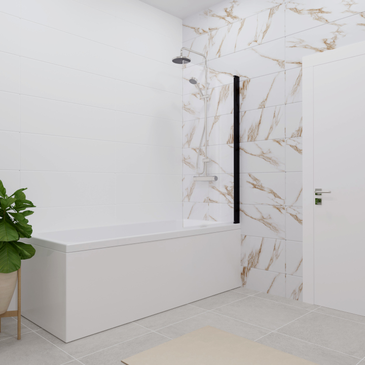 Шторка на ванну СОЛО-БЛЭК 75х140 распашная, стекло прозрачное 4мм, профиль чёрный # ТРИТОН