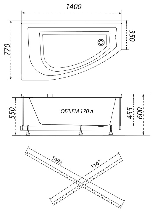 Комплектация: чаша ванны без каркаса.